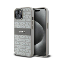 Kožené pouzdro DKNY Mono Stripe & Metal Logo - iPhone 15 Pro (béžové)