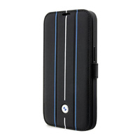 BMW Booktype Leder Stempel Blaue Linien - iPhone 14 Pro Max Tasche (schwarz)