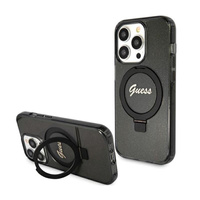 Guess Ring Stand Script Glitter MagSafe - iPhone 15 Pro tok (fekete)