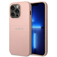 Guess Saffiano fém logós csíkok - iPhone 14 Pro tok (rózsaszín)