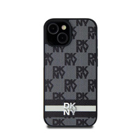 DKNY Leather Checkered Mono Pattern & Printed Stripes - Etui iPhone 14 Pro (czarny)